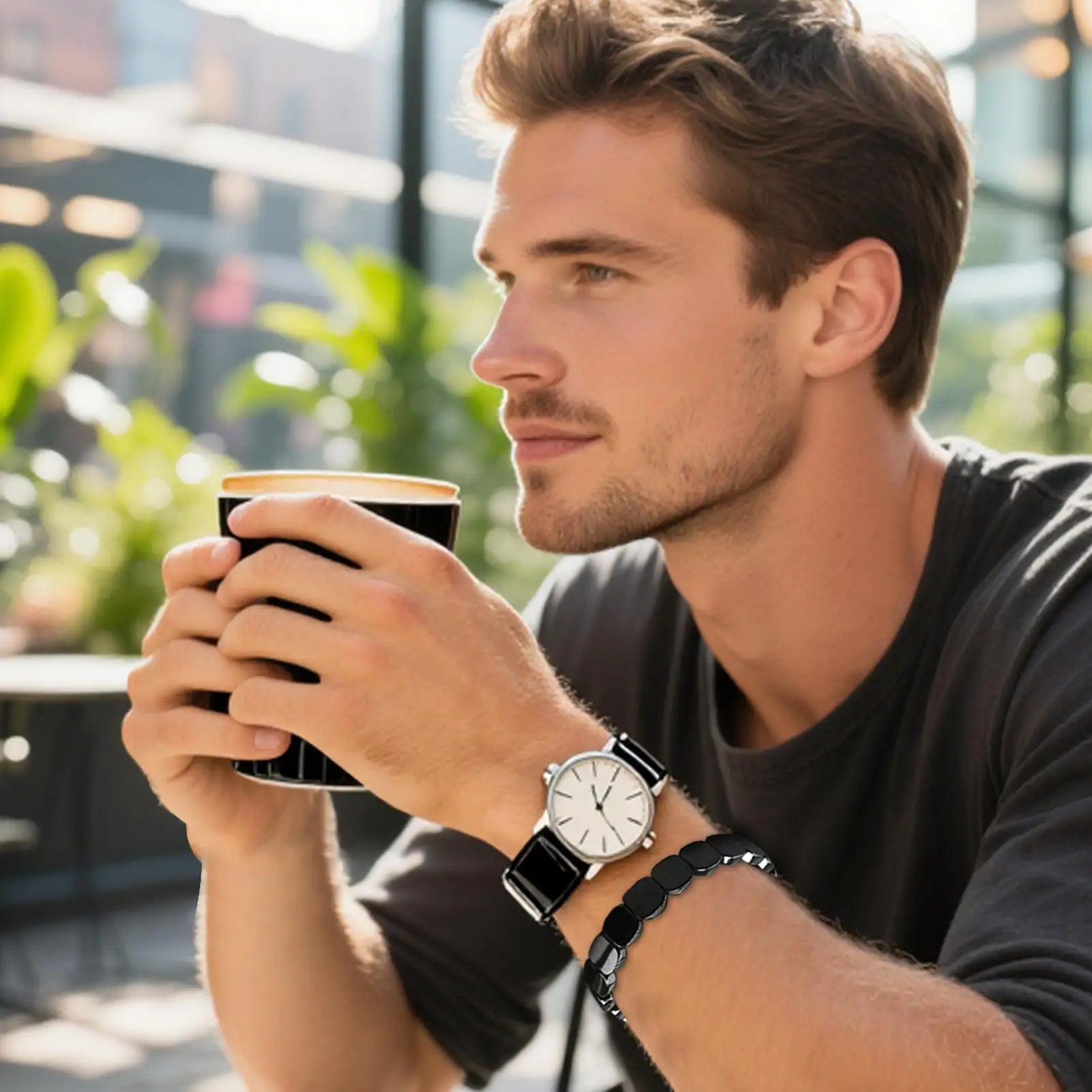The men hematite bracelet for Confidence is a versatile piece of jewellery designed to improve your wrist with a bold, masculine appeal. Suitable for both formal and casual settings, this fashionable accessory effortlessly complements any outfit. Crafted to reflect timeless style, it serves as an suitable decor for personal expression or a thoughtful choice for birthdays, graduations, Valentine's Day, or other special occasions. Great for fathers, husbands, boyfriends, friends, or classmates, this bracelet symbolizes confidence and sophistication. Improve your everyday look or delight someone special with this meaningful men hematite bracelet for Confidence, blending elegance with modern fashion sensibilities.