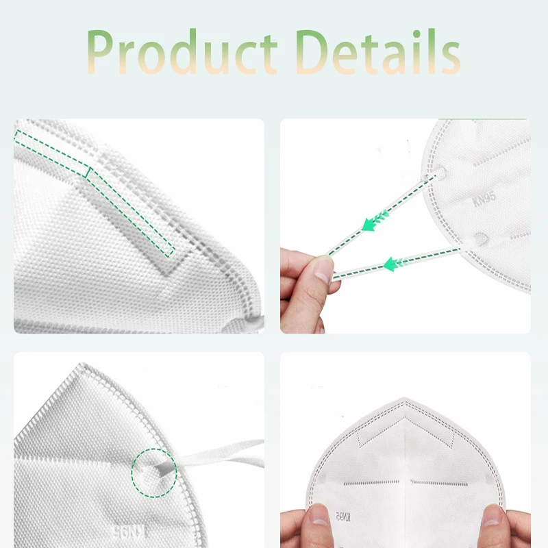 20/40/60pcs white and black 5-layer KN95 masks, with breathable elastic earrings, filtration efficiency of 95%, dustproof
