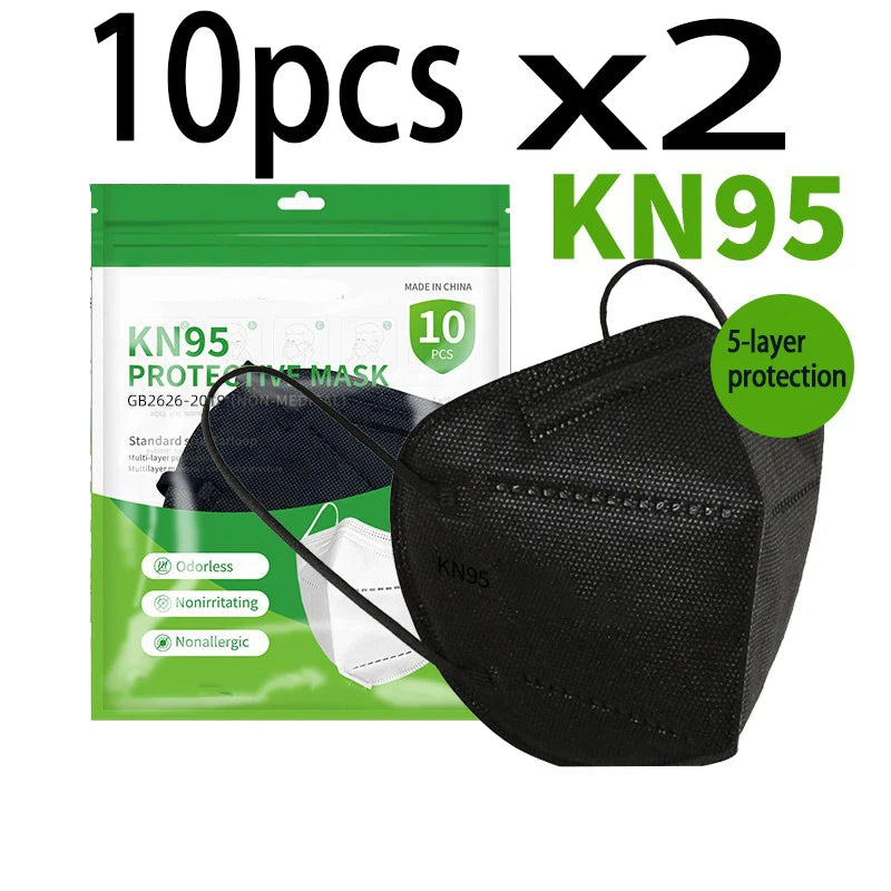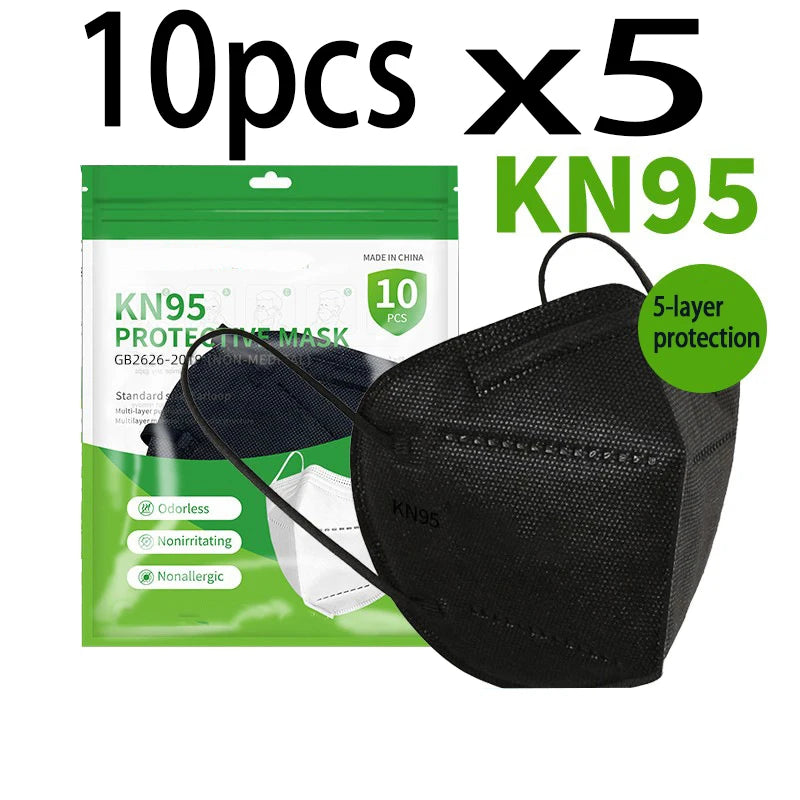 50/100pcs Black and White Masks Adult KN95 Masks Facial Travel Use Dustproof 5-Layer Breathable Design Adjustable Nose Bridge