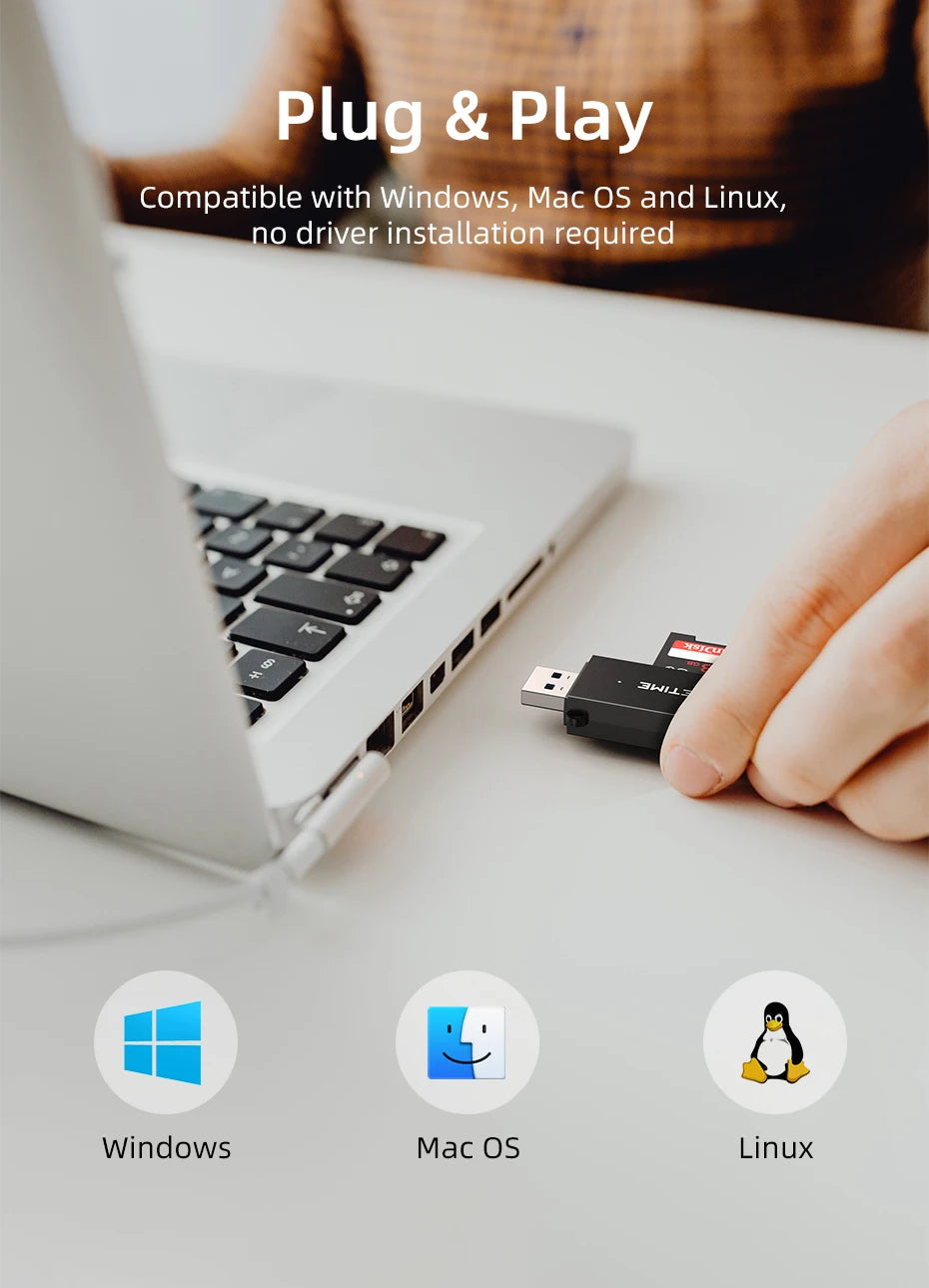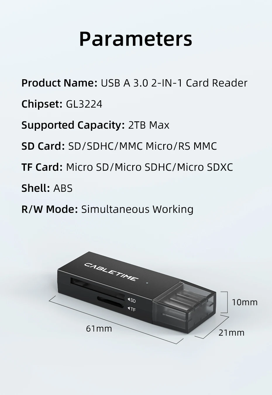 CABLETIME High-Speed Dual-Port Card Reader USB C & USB 3.0 SD Card Reader for Laptop Accessories 104MB/s 5Gbps Card Reader