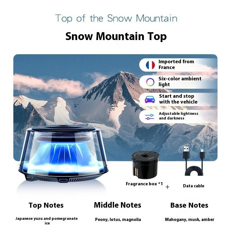 This high-end car aromatherapy machine features an automatic spray function with long-lasting fragrance over 90 days. Made with a plastic perfume holder and includes aroma diffuser, fragrant bullet, and data cable. It serves as decoration, fragrance, and odor removal for your car. Available in multiple elegant scents.