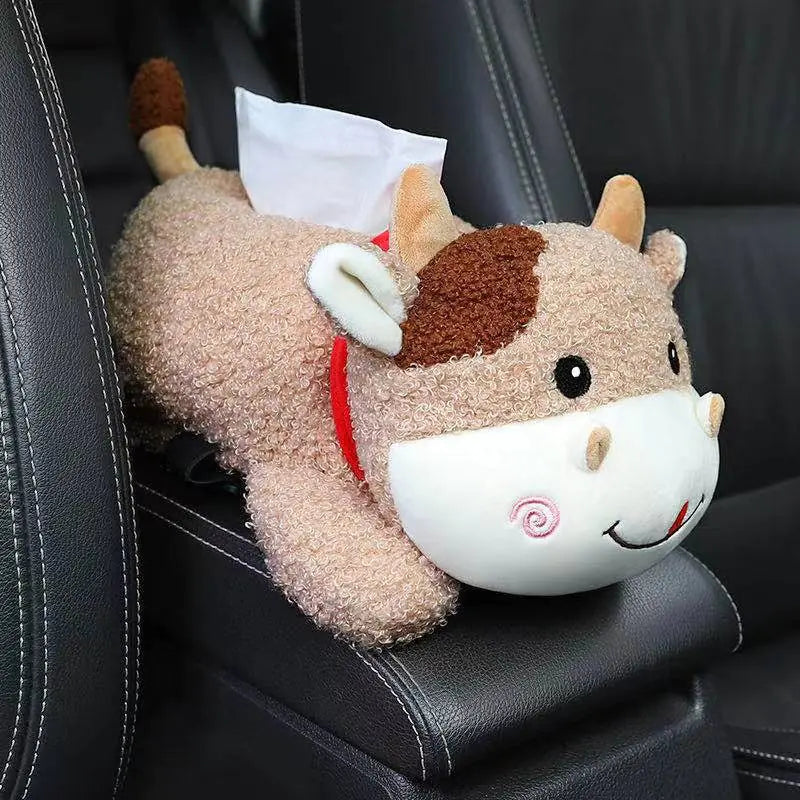 Keep tissues within easy reach with this cute plush car armrest tissue box holder. It hangs on the center armrest or seat and fits most standard tissue packs. Soft plush cover adds a fun touch to your interior; size 18 x 31 cm. Includes 1 tissue box cover in multiple adorable styles.