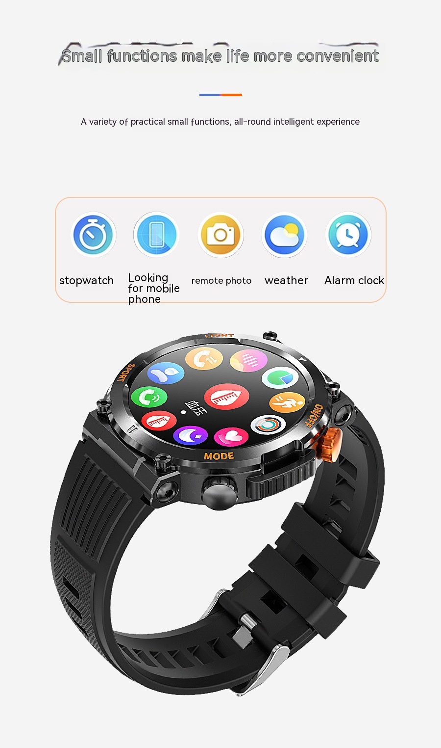 Our smart watch isn't just about looks; it boasts an impressive range of features to keep you connected and informed. Enjoy the convenience of Bluetooth calling, photographing remotely, and monitoring your fitness with step counting, heart rate, blood pressure, and blood oxygen detection. Plus, it tracks your sleep patterns to help you achieve better rest.