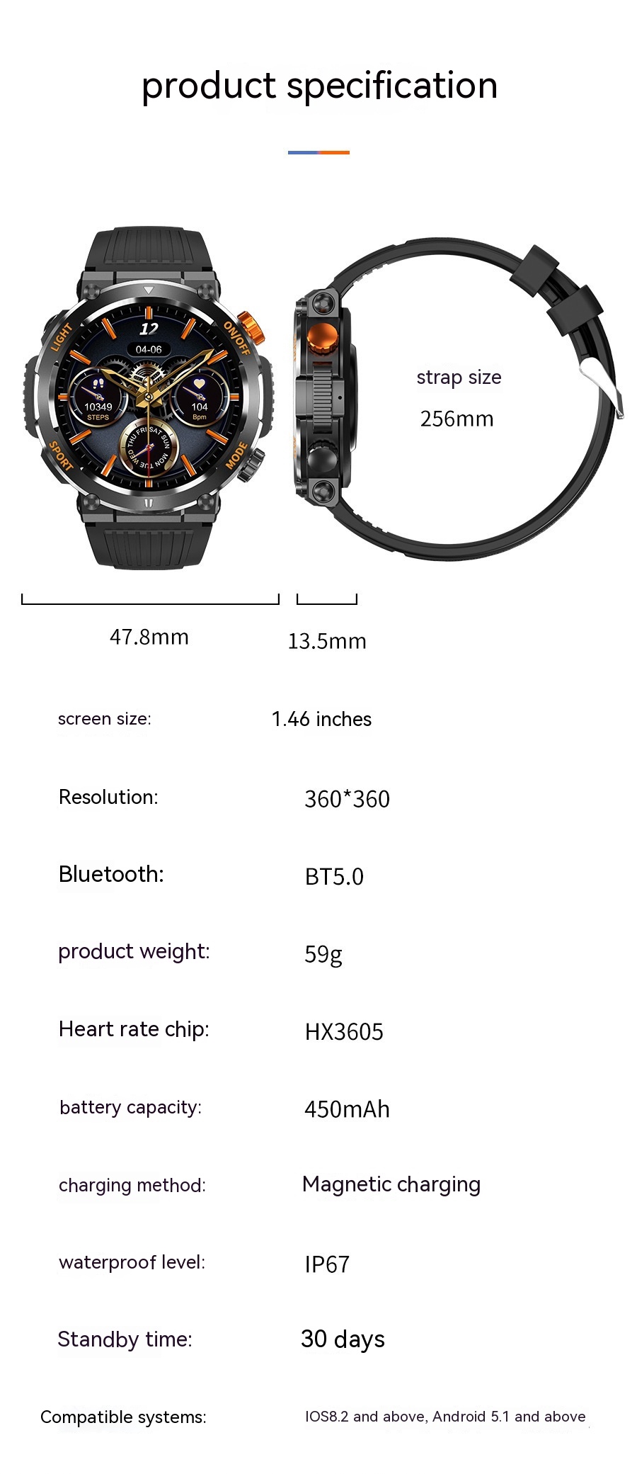 Designed with a durable silicone wristband and a touch button operation mode, this smart watch is both comfortable and easy to use. With its waterproof capabilities, you can wear it during any activity without worry. The magnetic charging interface ensures that keeping your watch powered up is a breeze.