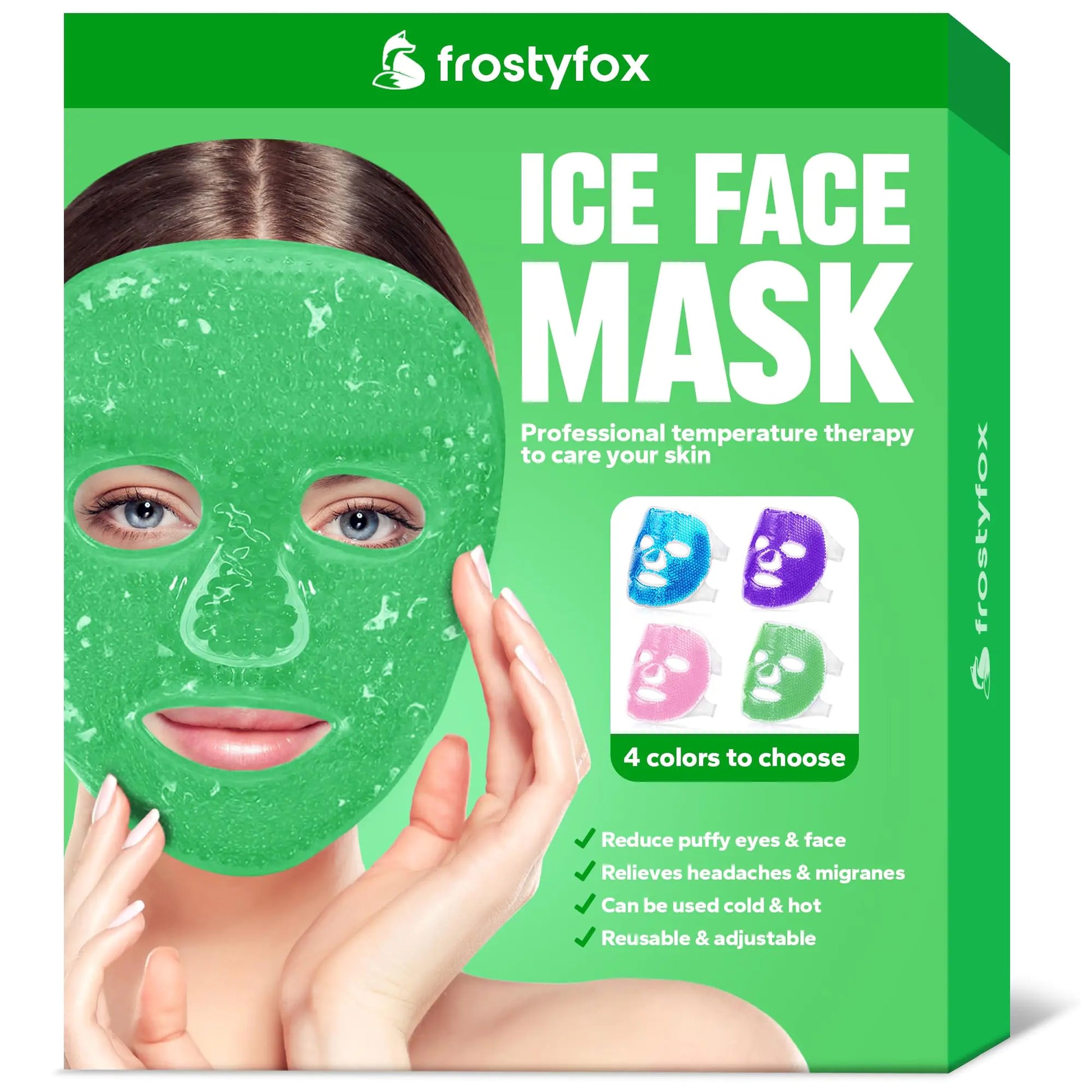 FrostyFox Ice Mask for FaceOur ice face mask filled with gel beads can be used as a hot pack or a cold pack.It can be used for a variety of purposes including skincare pain relief and stress management. Its also reusable.This ice face mask is designed to fit all face shapes and sizes with adjustable fit for maximum.Specifications:Material: Gel Face Mask Cold PackProduct Color: GreenProduct Size: 7.5x 5x 0.59 inches; 7.30 ozPackage Size: 7.5x 5x 0.62 inches; 7.39 oz