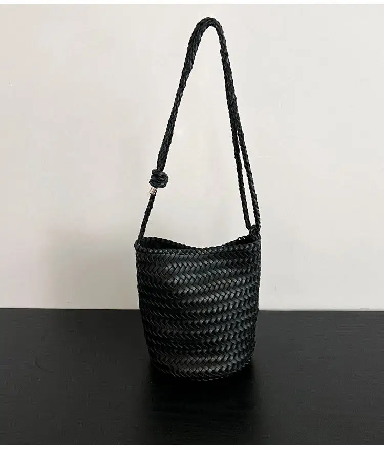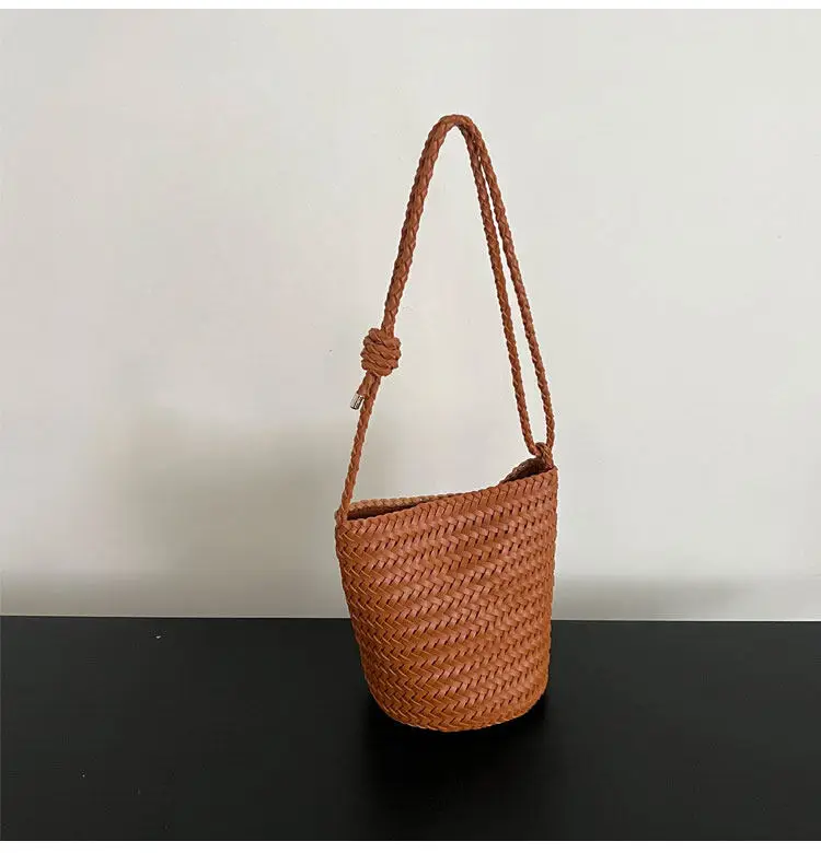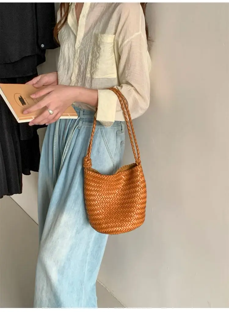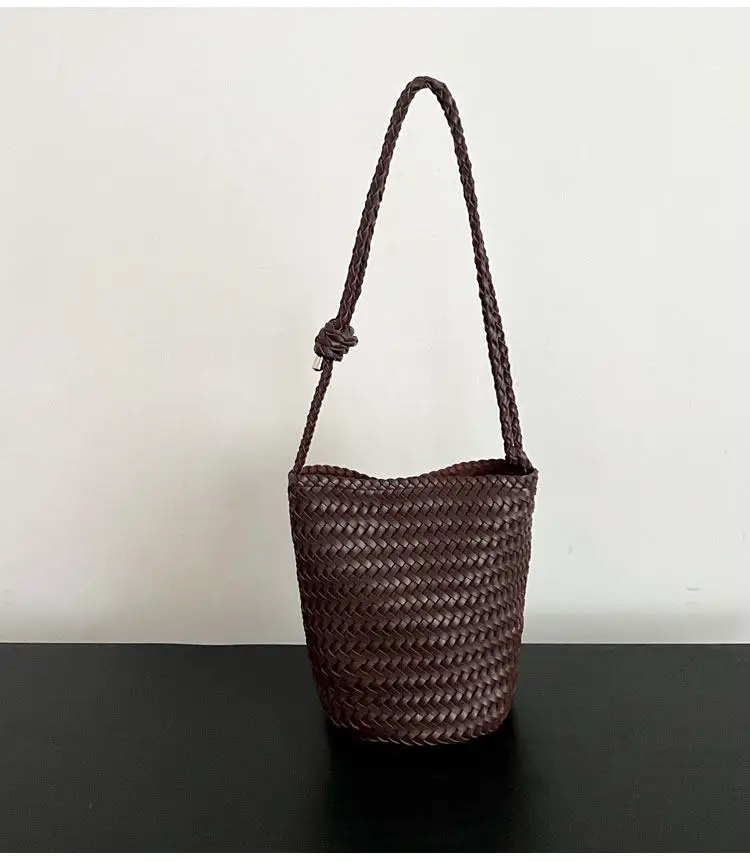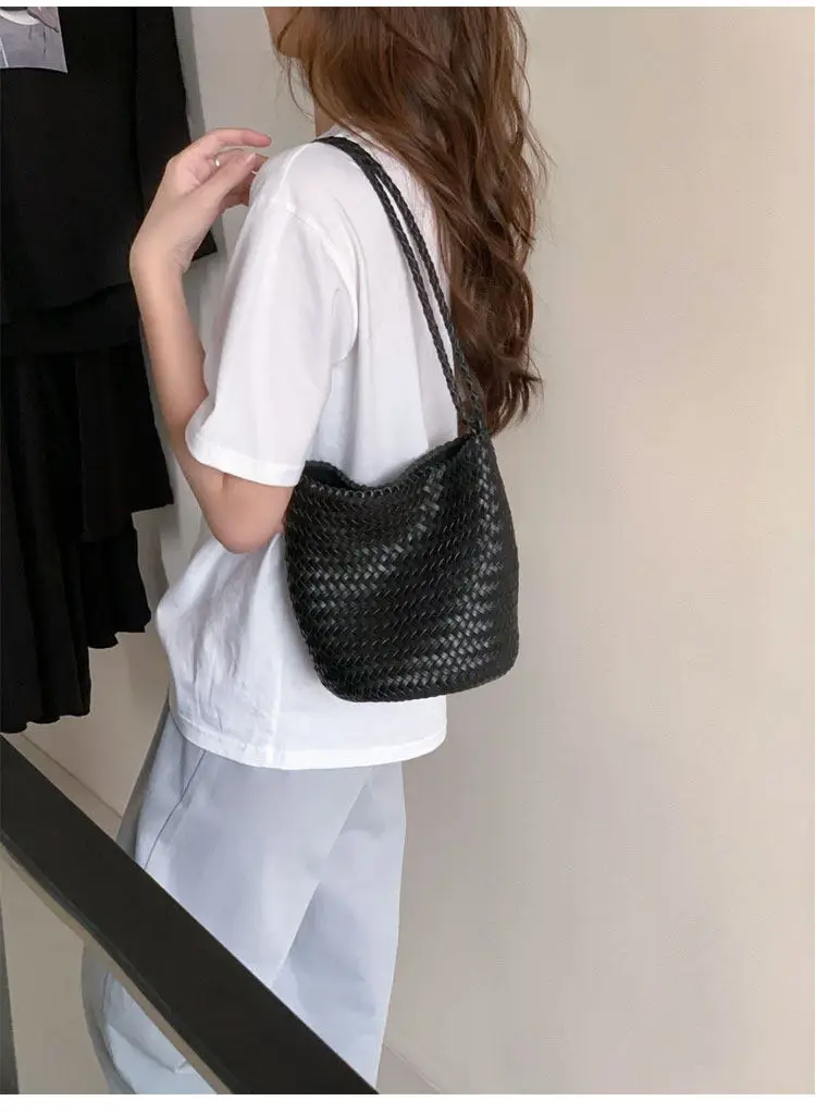 Herringbone hand-woven bucket bag for women, large capacity, high-end versatile handbag, shoulder bag, underarm crossbody bag.