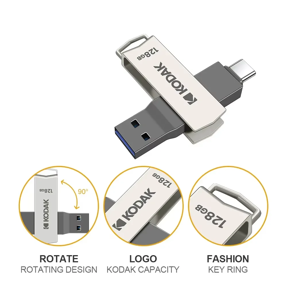 K273 USB 3.2 Type C Pendrive Metal U-disk Portable 2in1 32GB/64GB/128GB/256GB USB Flash Drive