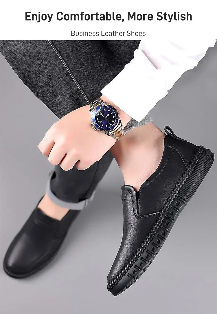 Men's Hand Stitched Genuine Leather Slip On Shoes Business Formal Occasion Wedding Party Footwear Leisure Official Board-Shoes