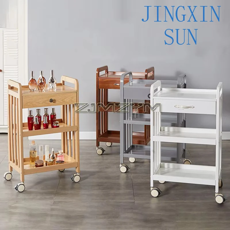 Modern Beauty Salon Tools Trolley Auxiliary Cart with Wheels for Beauty Salon Movable Drawer Storage Rack Creative Bar Cart