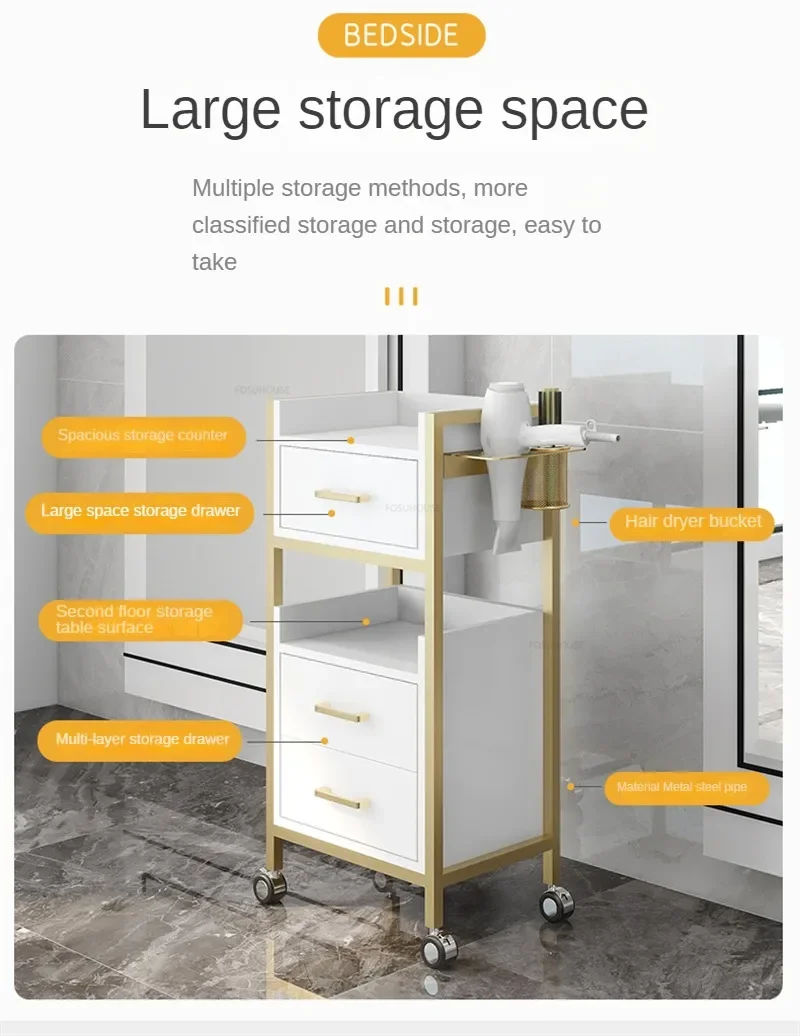 Modern Salon Trolleys with Drawers Designer Salon Furniture Auxiliary Tool Cart with Wheels Beauty Salon Professional Equipment