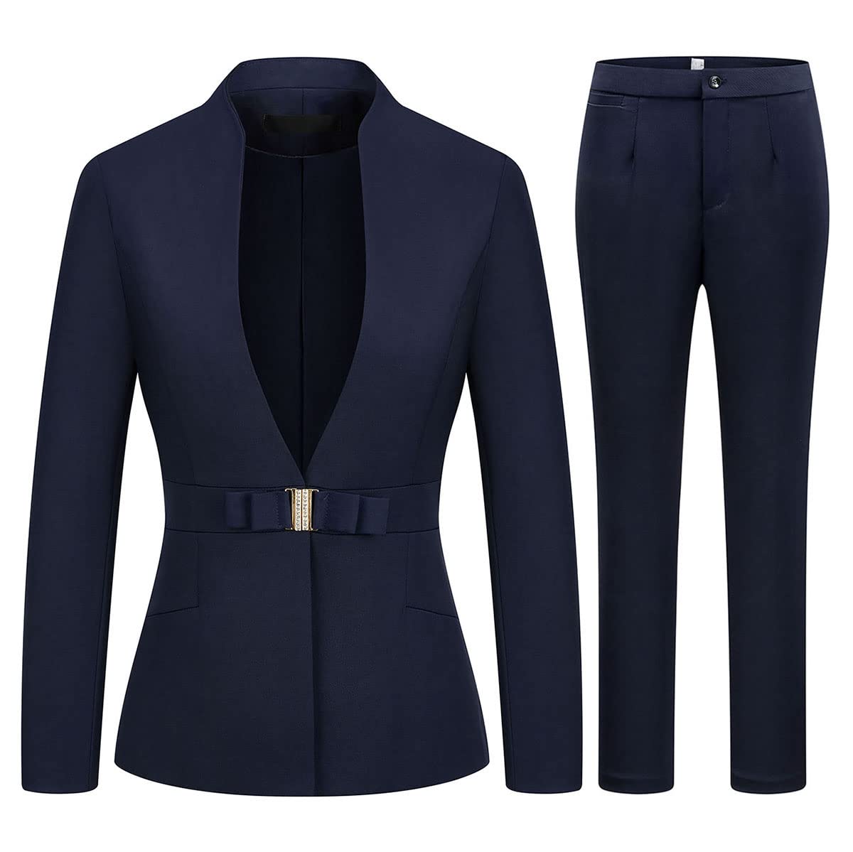 [Comfortable Fabric: This womens 2 piece business suit is made of lightweight and soft Polyester and Spandex suitable for wear in all seasons. Size: For best fitting we recommend referring to the SIZE CHART carefully and take measurements before order. "Design: No lapel waist-slimming design with side pockets this womens office suit has a simple business style. It will highlight your capable temperament." Occasions: This business professional attire women is suitable for all occasions - office work business meeting casual wear dating daily wear etc. How to care: Hand or machine wash with cold water. Line Dry. Do not bleach. Do Not Iron.]