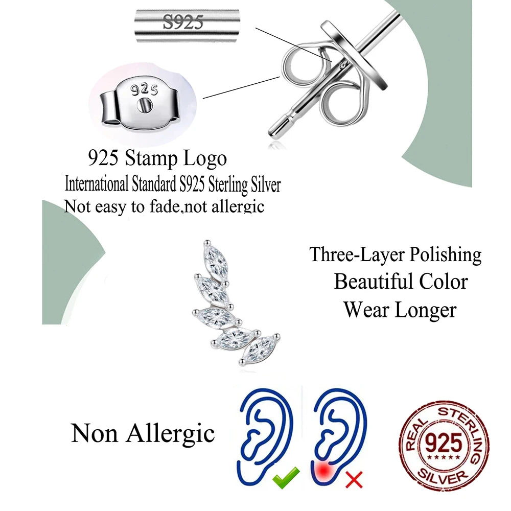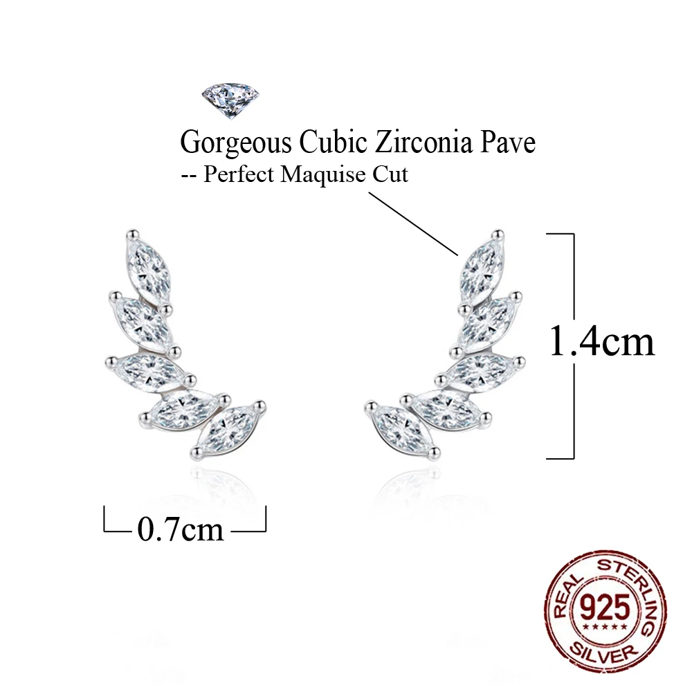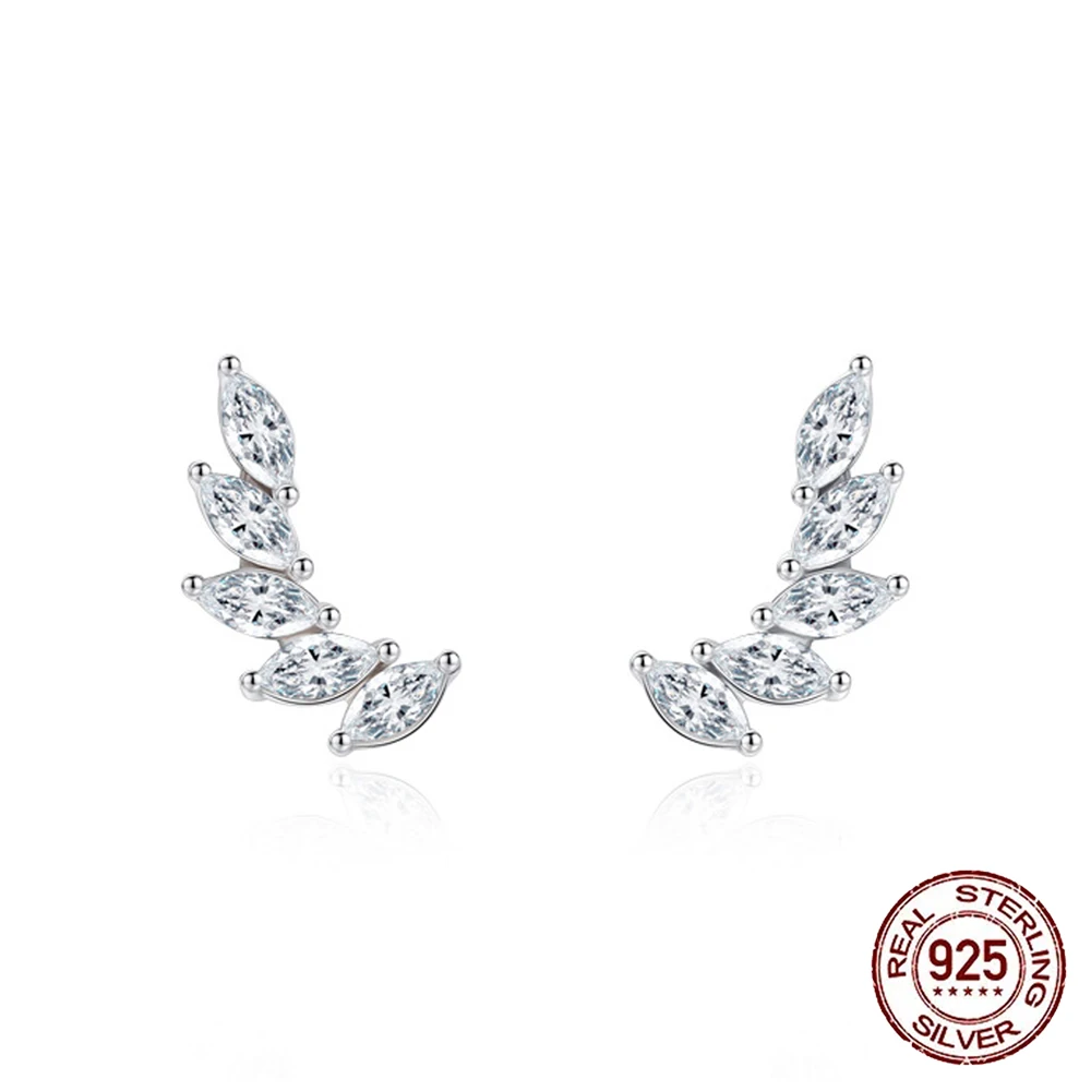 New Fashion Marquise Cut Cubic Zircon Paved 92.5% Sterling Silver Leaf Feather Shape Cheap Stud Earrings for Womens Jewelry