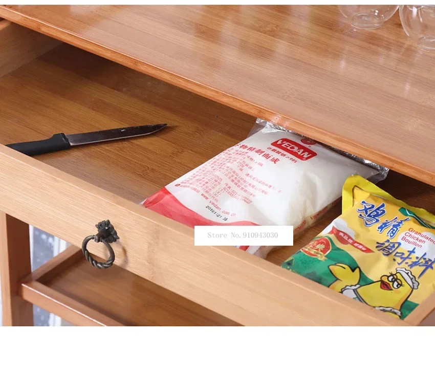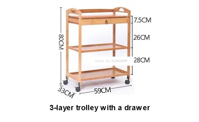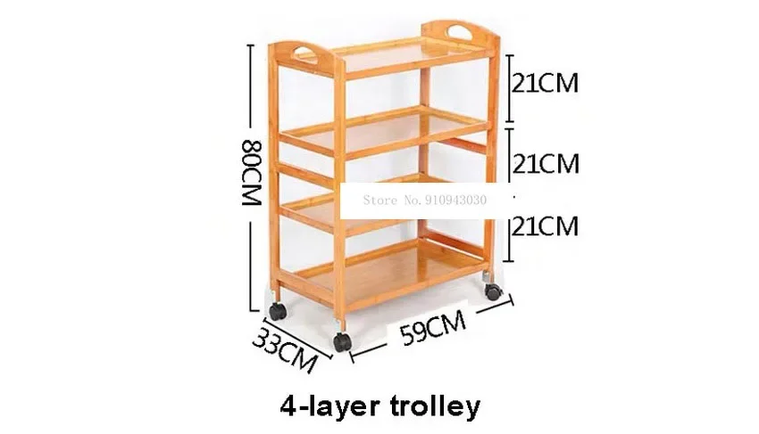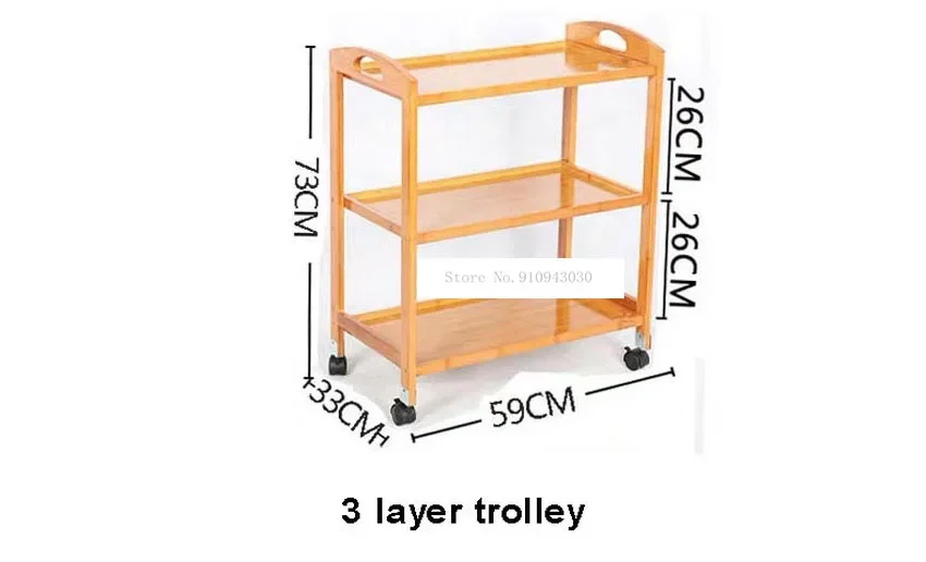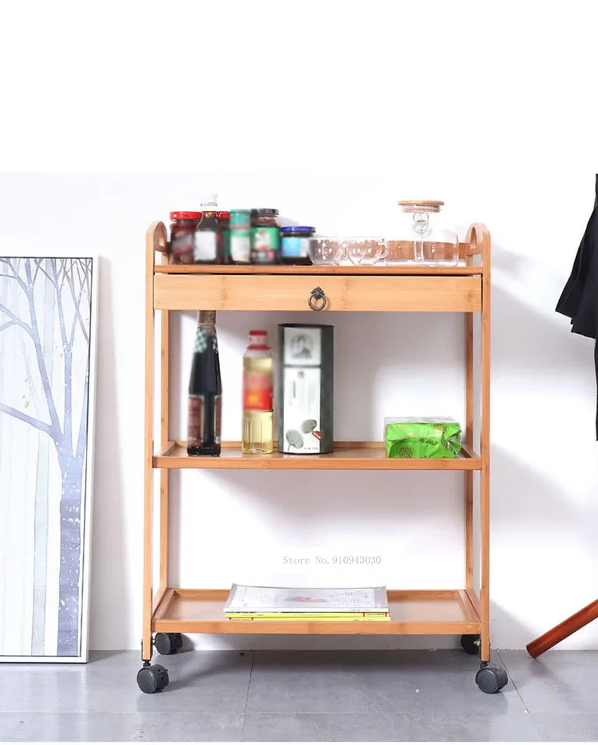 New Movable Bamboo Dining Trolley 3/4 Layer Tea Dining Cart Small Living Room Side Cabinet Beauty Salon Trolley Kitchen Shelf