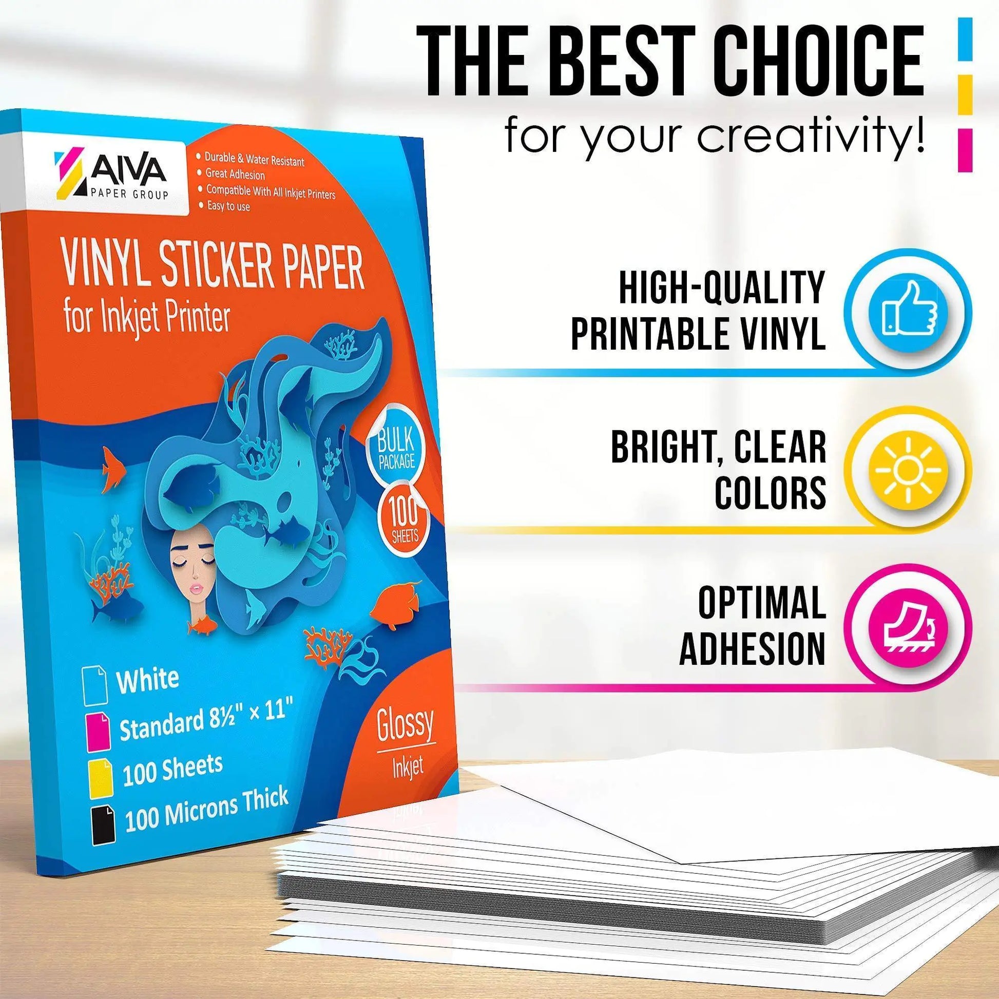 Scratch and Tear Resistant Paper - our printable vinyl sheets for inkjet printer made with high-quality glossy printable sticker paper, your artwork will be extremely durable, bright colored and reliable