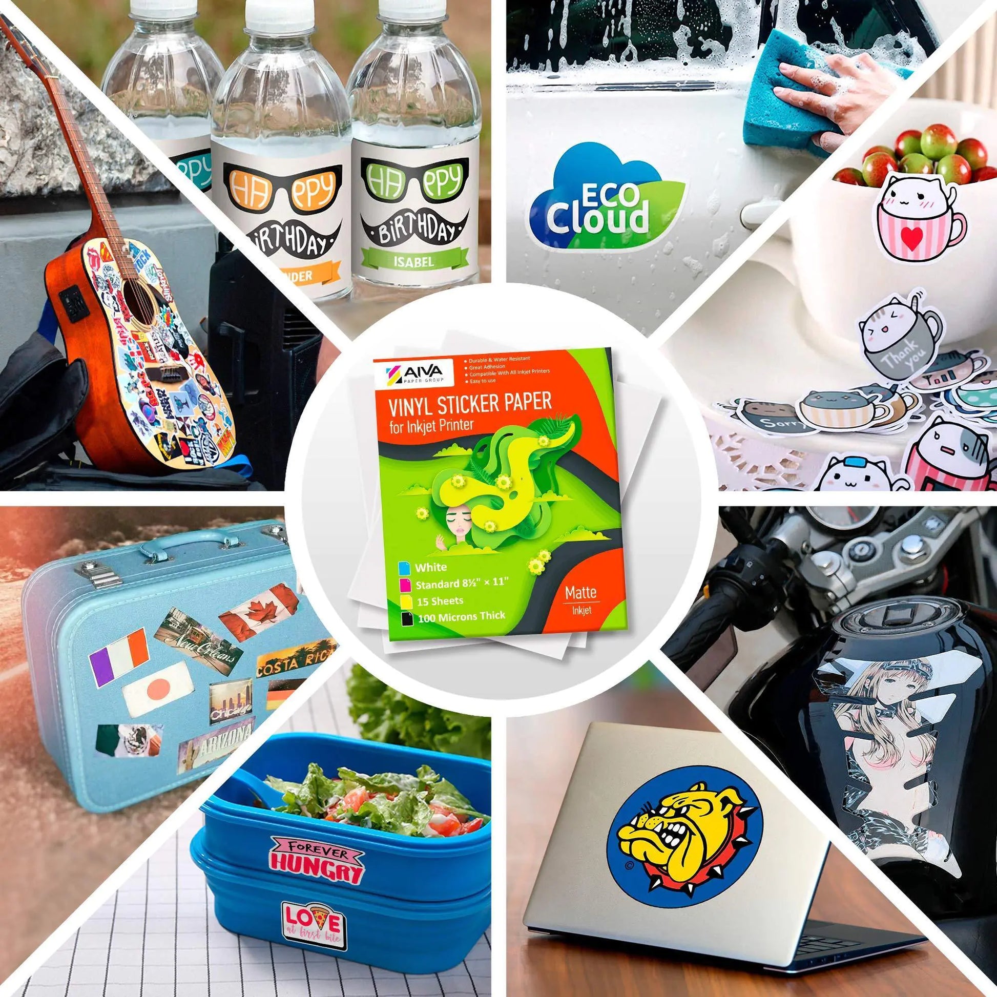 Endless possibilities for your creativity - Vinyl Sticker Paper will stick on all flat surfaces, plastic, glass, wood, and metal. Great for DIY projects, Home Decor, Scrapbooking labels, including wall murals, decals for cars, printable vinyl stickers for laptops and phone labels, bumper stickers, labels for food container and coffee mugs (not suitable for t-shirts)
