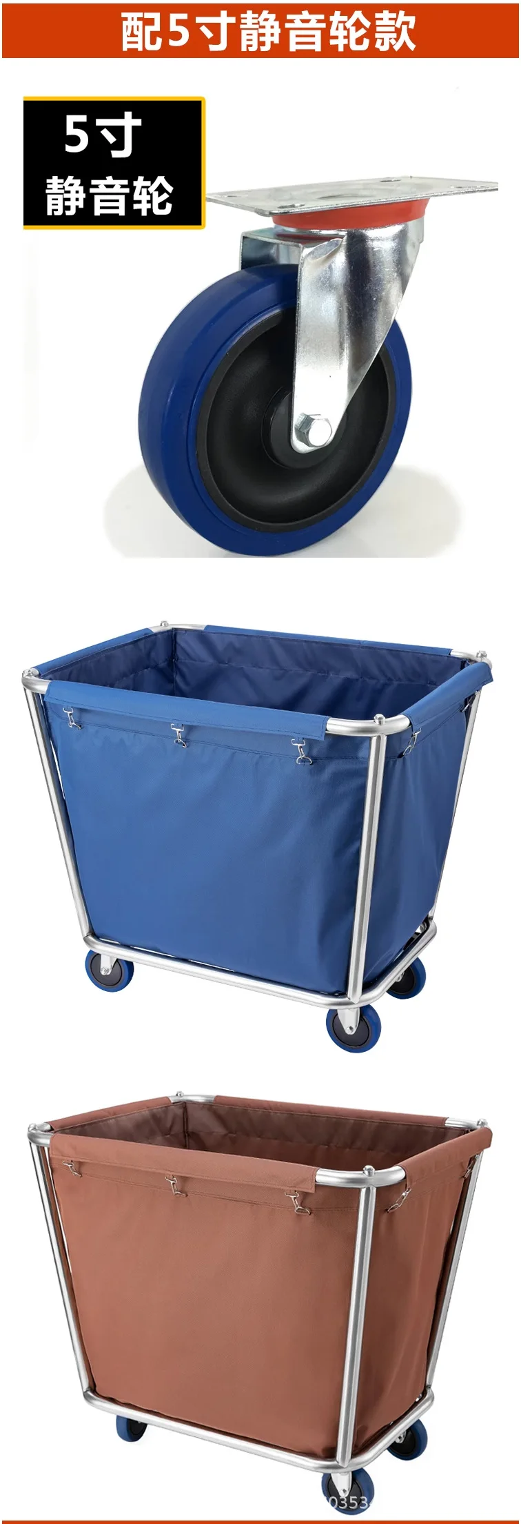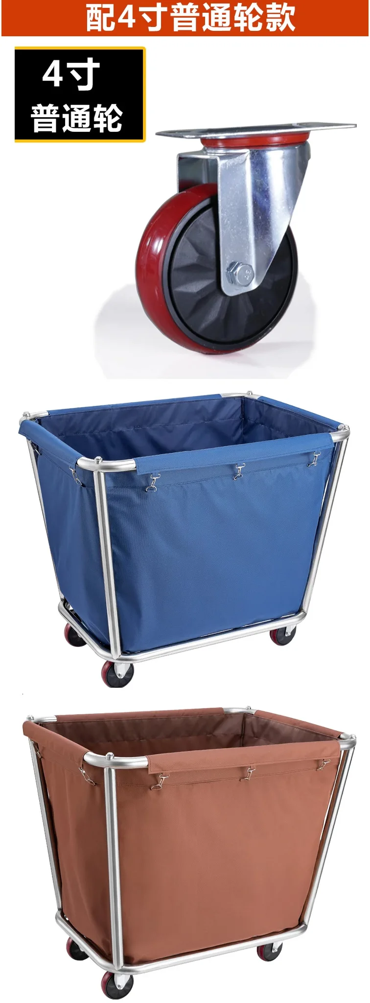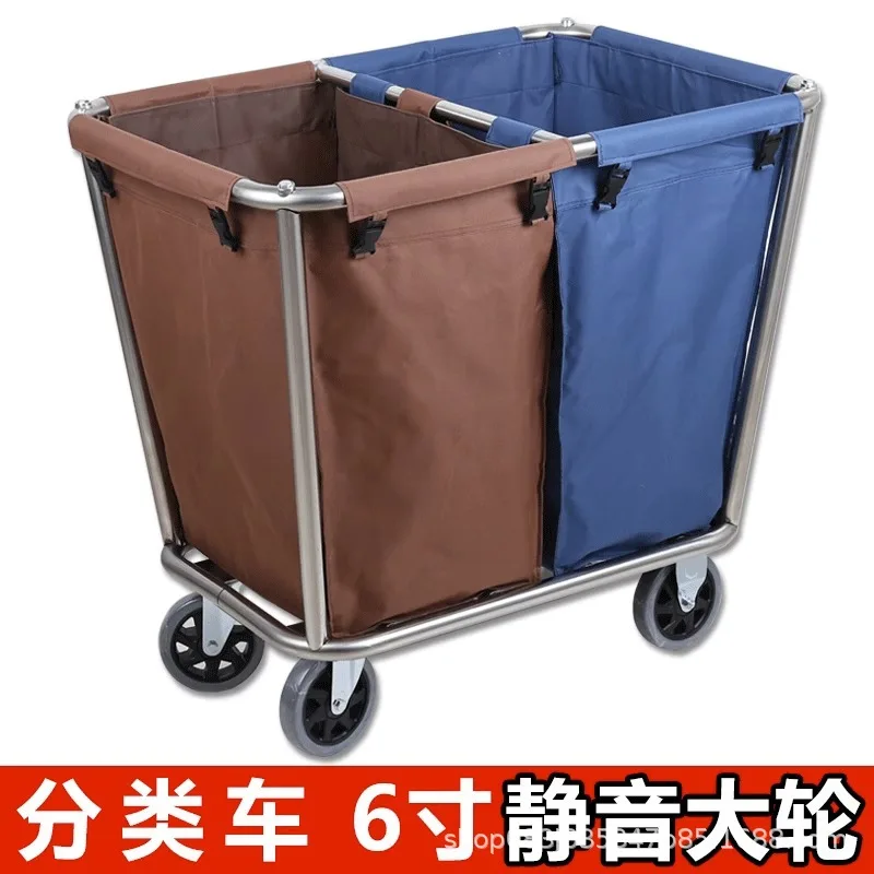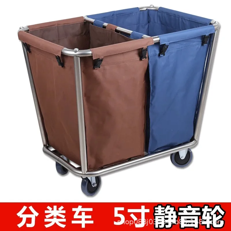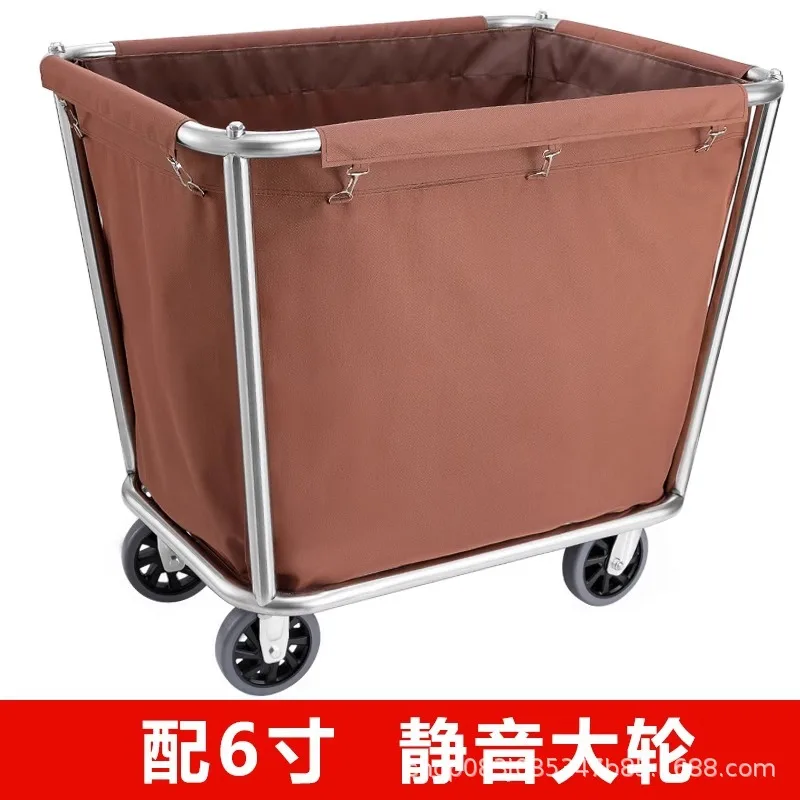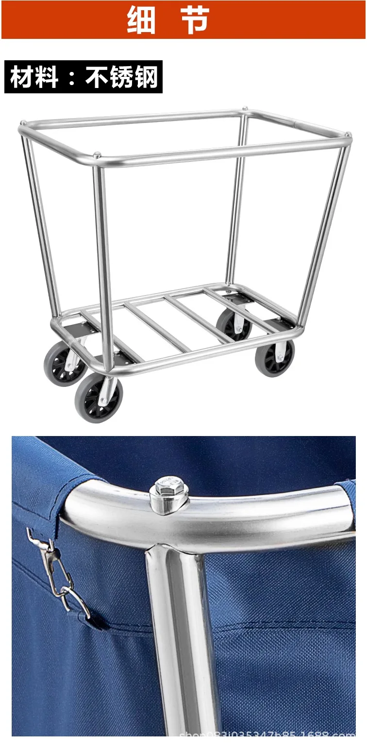 Stainless steel hotel rooms linen cart cloth bag hotel thickened silent linen cart multifunctional cleaning room car