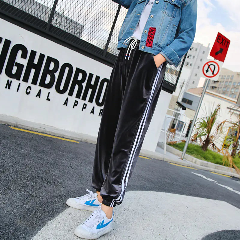 Velvet Harem Pants with Tapered Legs