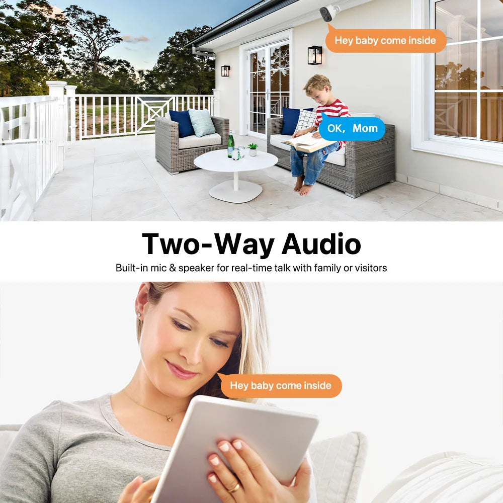 Built-in waterproof microphone & speaker, no matter how far away, allow you to interact with pets and family or dissuade unwelcome guests.