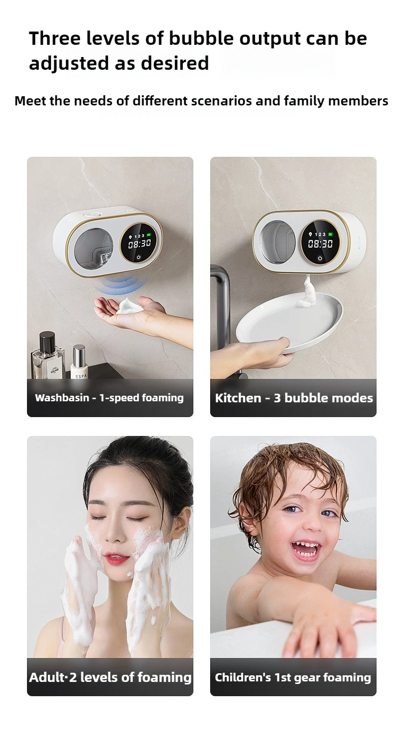 3. Customized hand-washing experience: The dispenser offers three levels of foaming volume, allowing you to adjust according to your preference and the specific hand-washing requirements.