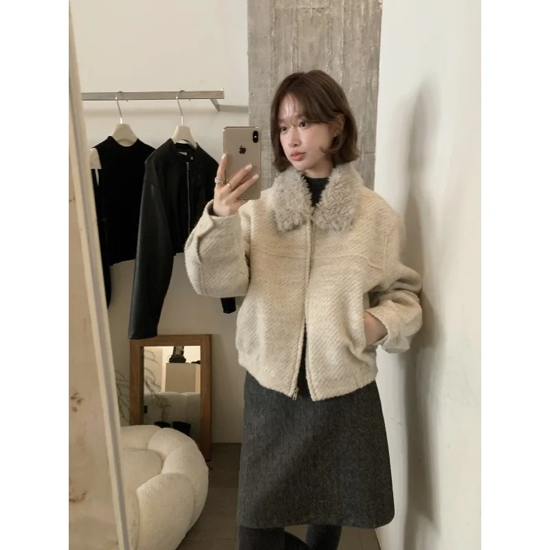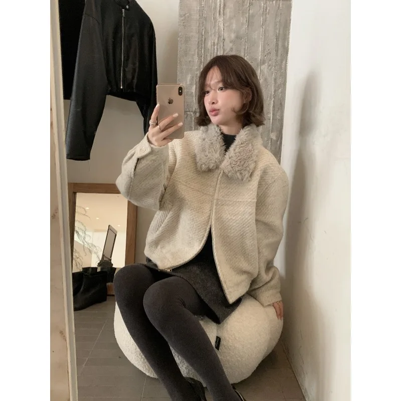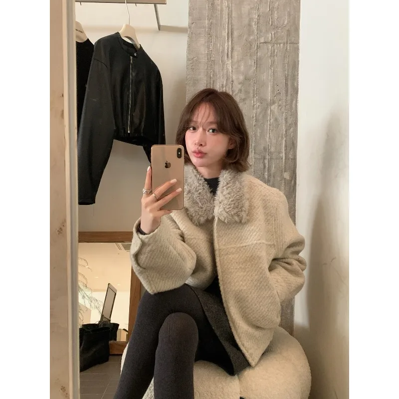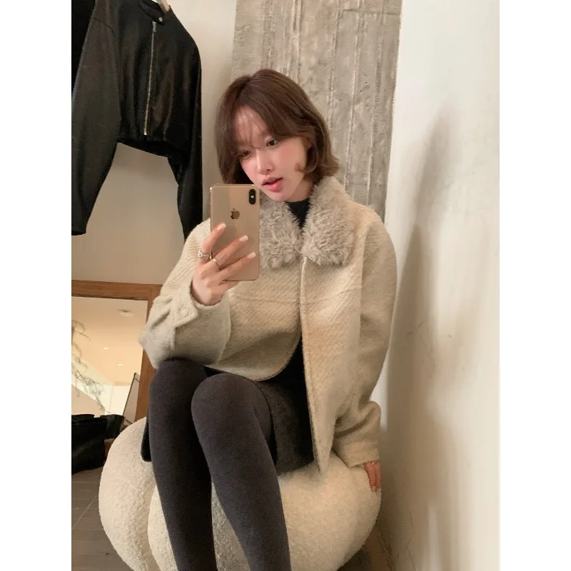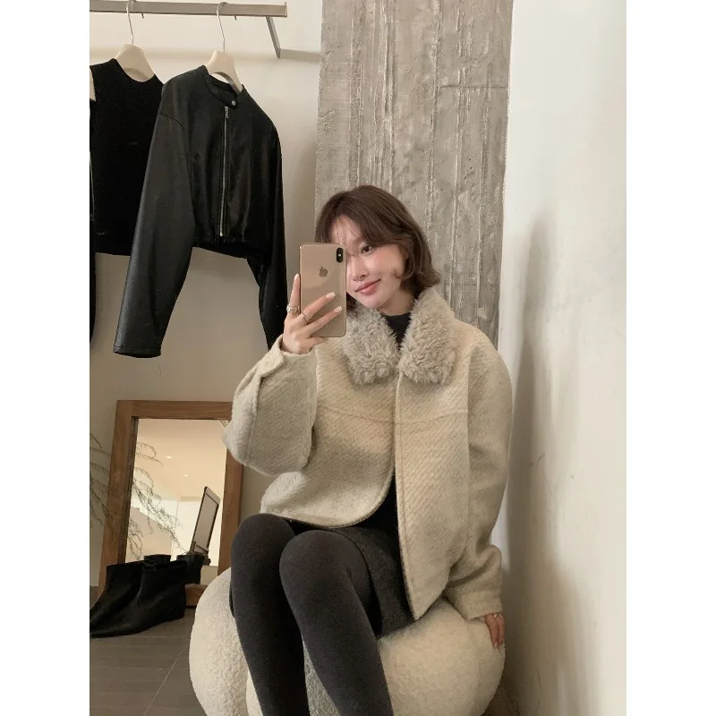 Wholesale Winter 2026 New Fashion Casual Fur Lapel Short Sweet Simple Woolen Women's Coat