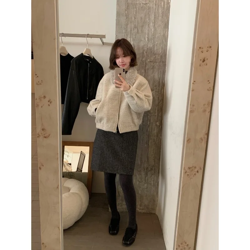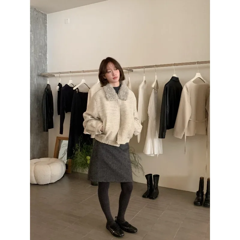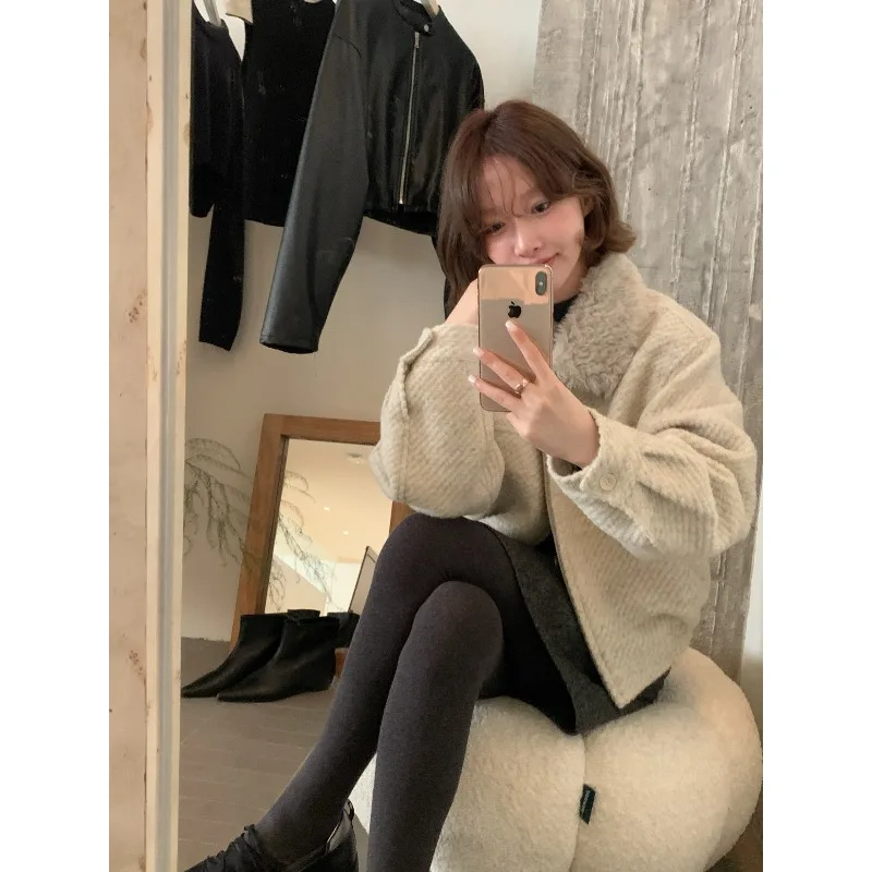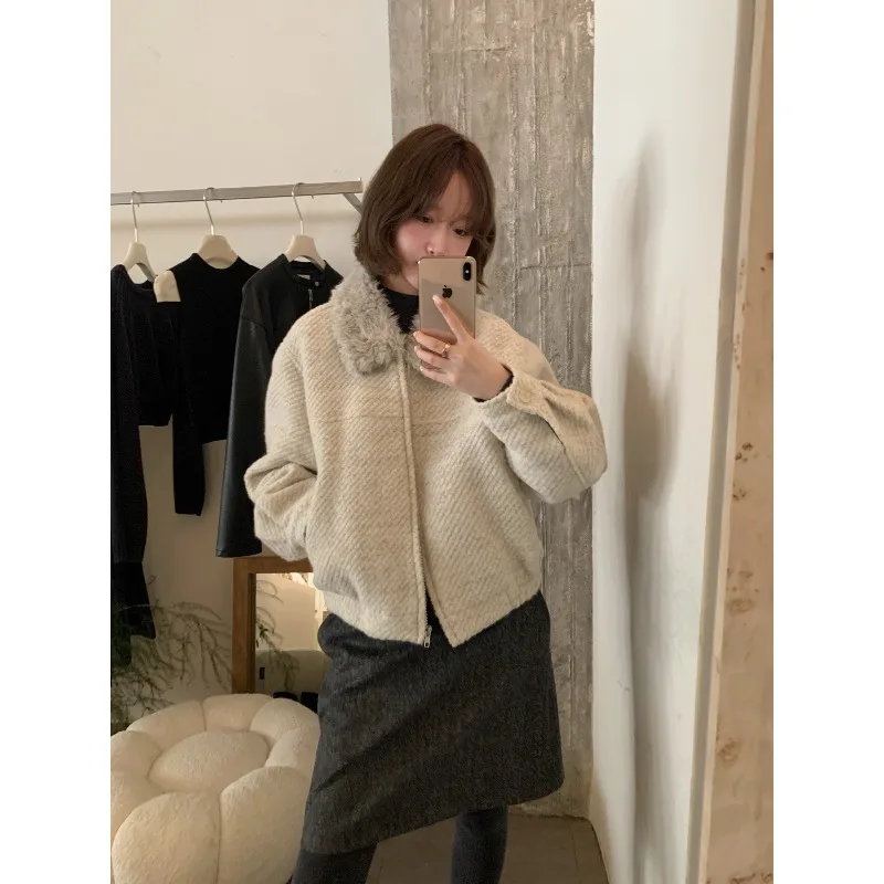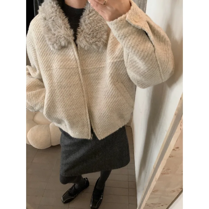 Wholesale Winter 2026 New Fashion Casual Fur Lapel Short Sweet Simple Woolen Women's Coat