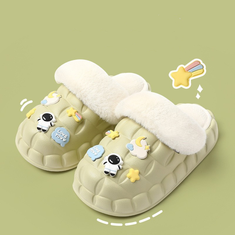 Featuring a unique design, these slippers come in a variety of vibrant colors to suit every little one's personality. Choose from delightful options like Bread-white, Bread-fruit green, Bread-cheese, and adventurous Spaceman themes. Your child will love slipping into these stylish and beautiful shoes!