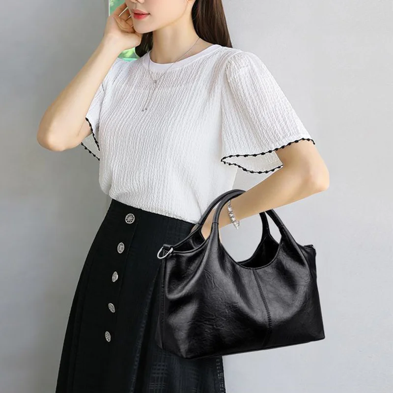 Women's Handbag, Large Capacity Elegant Detachable Crossbody & Handheld Shoulder Bag with Golden Tone Hardware, Zipper Closure
