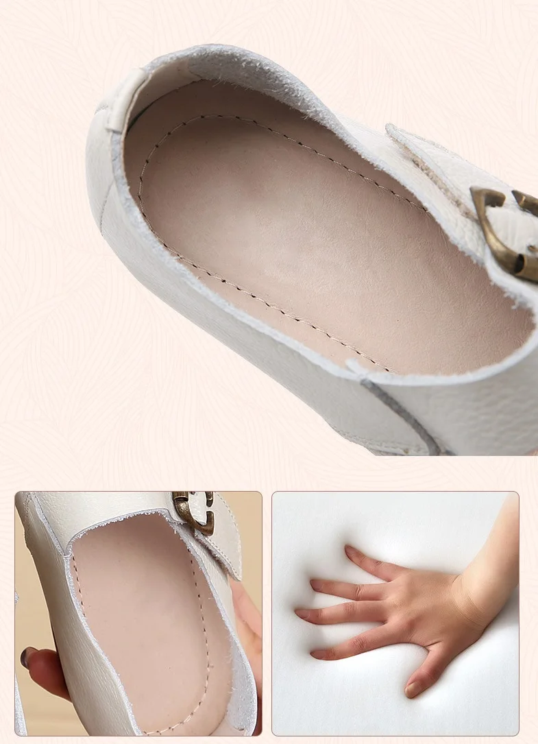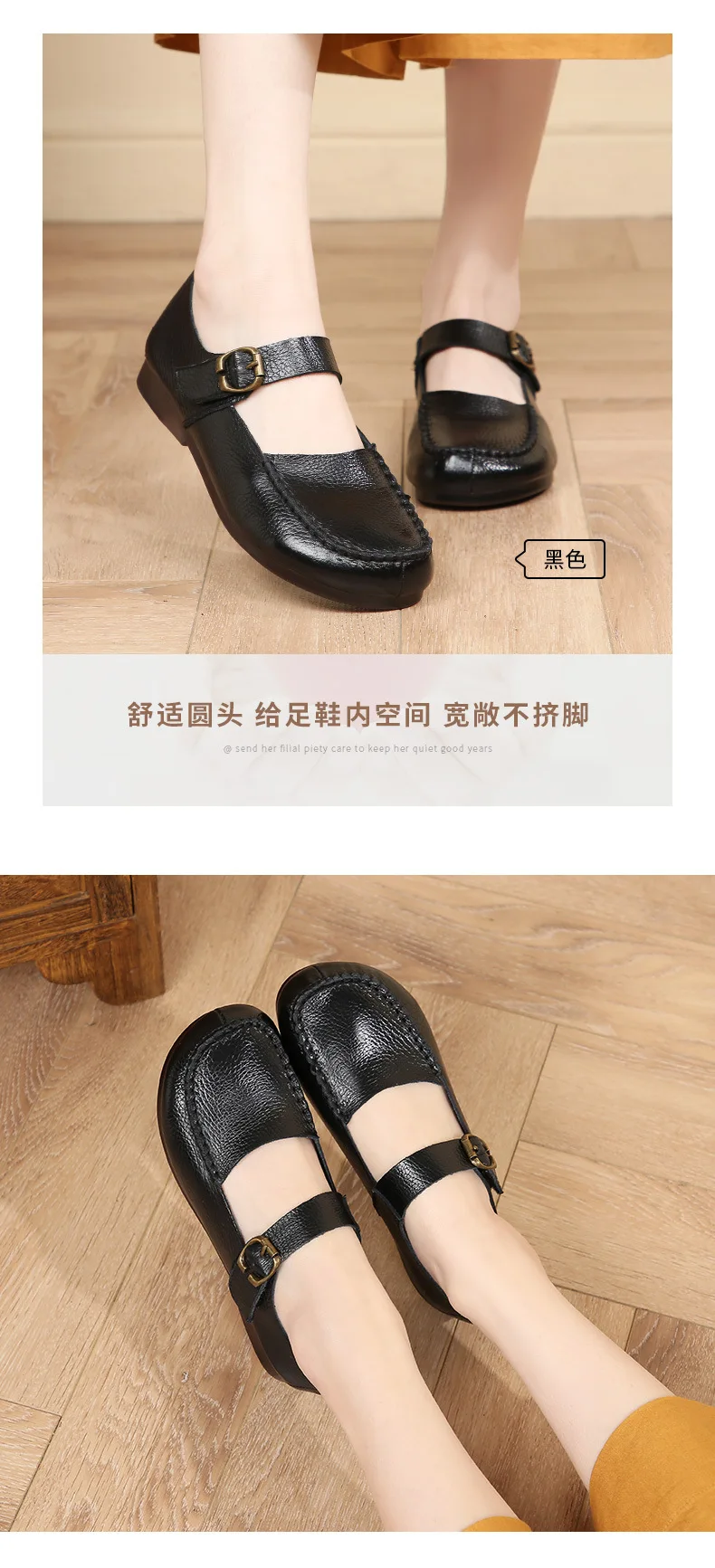 Women's Shoes Round Toe Belt Buckle Ladies Casual Flats Large Size 41 Leather Shoes Women Mary Janes Genuine Leather