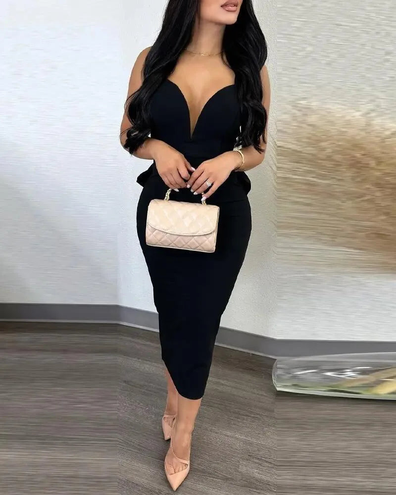 XTOCEAN Dress for Women Streetwear Elegant Solid Color Hip Wrap Open Back Deep V High Waist Split Bodycon Dresses