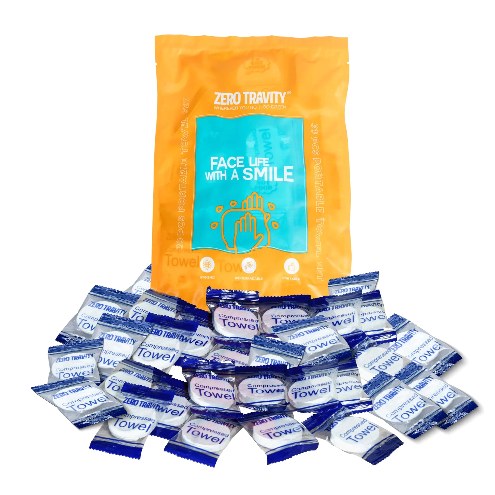 Zero Travity Disposable Towels for Travel 30pcs Towel Tablets Compressed Towels for Travel Ultra Soft Coin Tissue Portable and Reusable Camping Personal Care Products Recyclable Travel Towels
